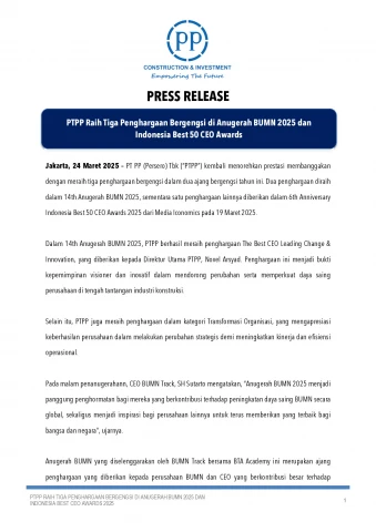 PTPP – Public Expose Live 2025 Strategi PTPP dalam Meningkatkan Kinerja Perusahaan di Tengah Dinamika Industri Konstruksi Nasional dan Tantangan Global